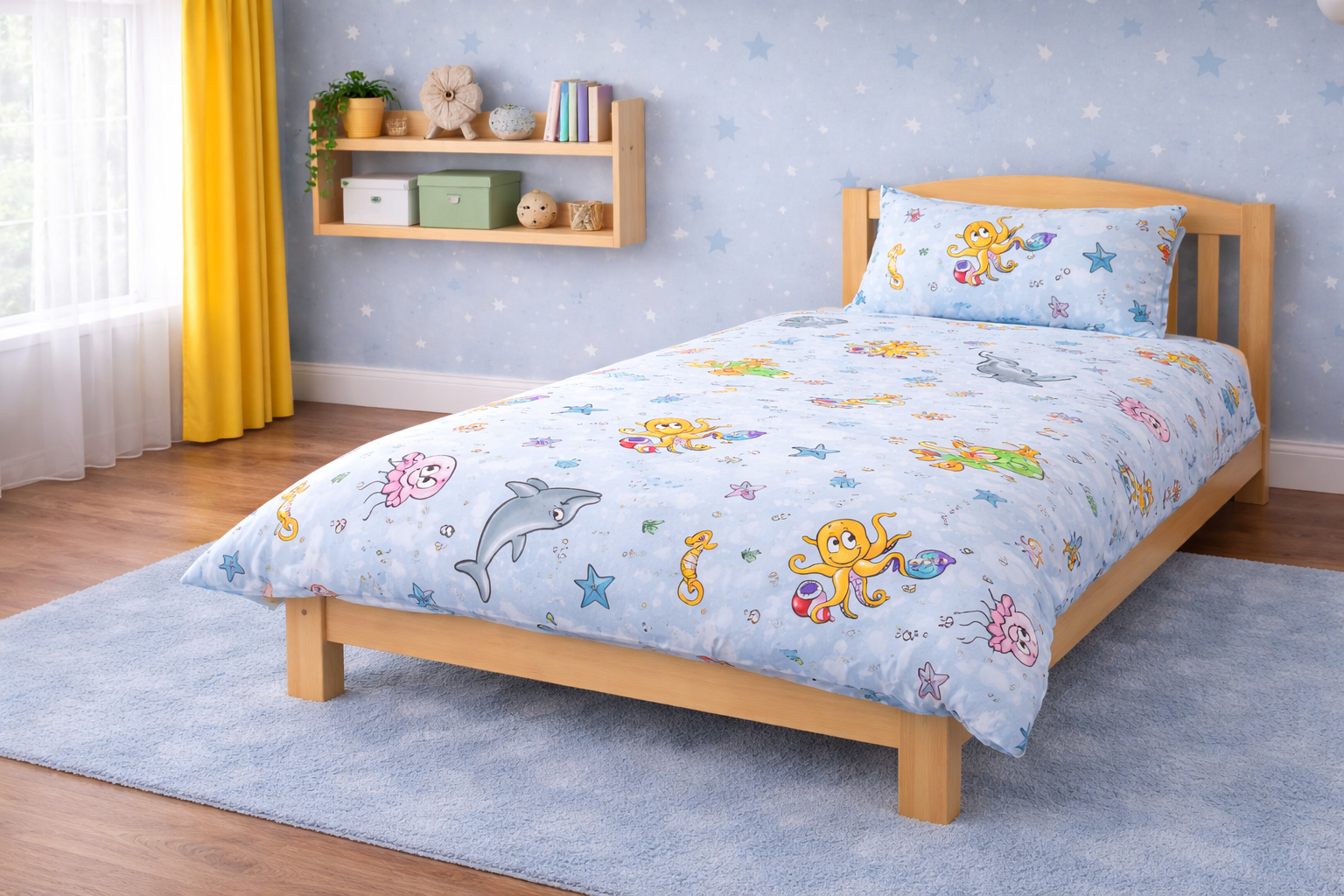 Kinderbettwäsche glatte Baumwolle hellblau Wassertiere