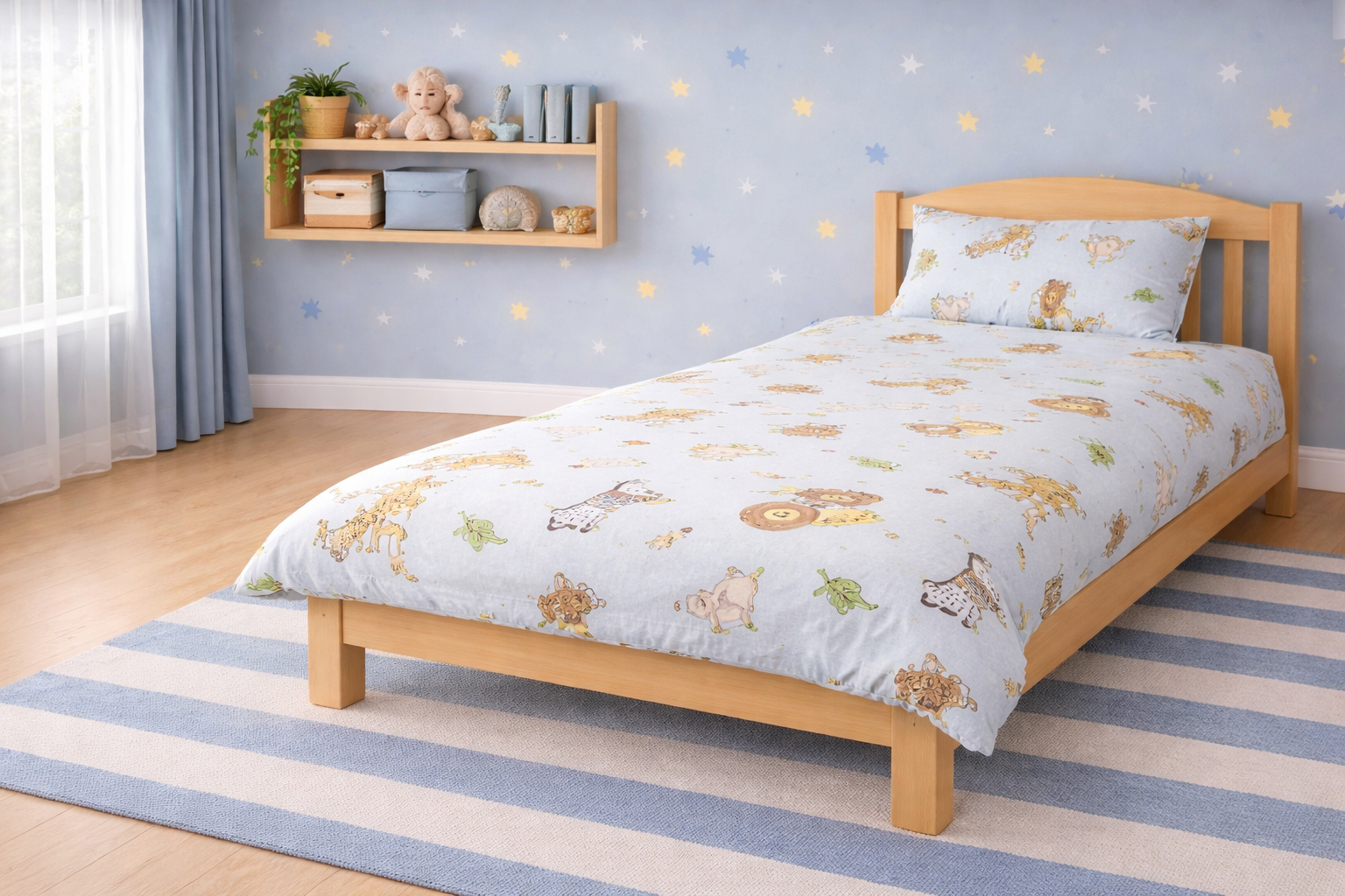 Kinderbettwäsche glatte Baumwolle Zootiere hellblau